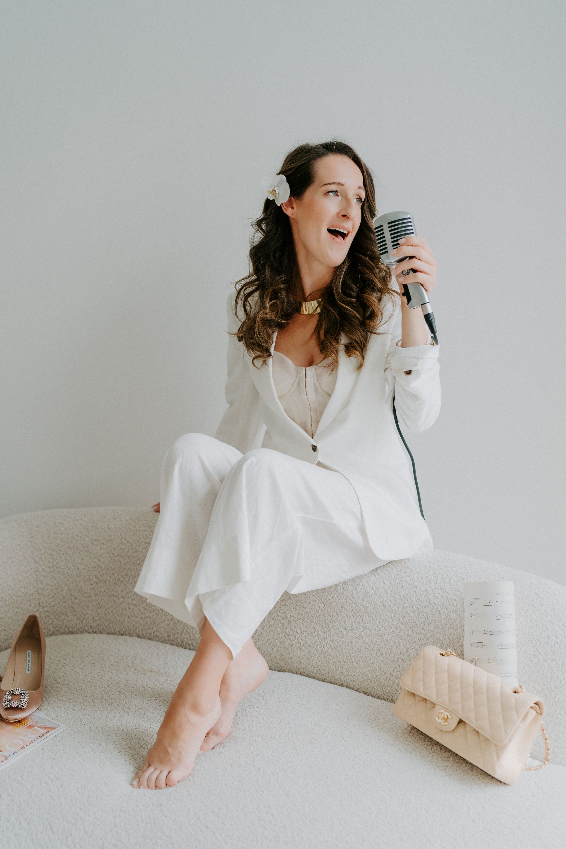 Mit meinem Gesang begleite ich Hochzeiten mit Feingefühl, Präsenz und einer klaren musikalischen Handschrift. Meine Sopranstimme bewegt sich zwischen gefühlvollen Balladen, stilvollem Pop, Musical- und klassischen Klangwelten – elegant, emotional und zeitlos.