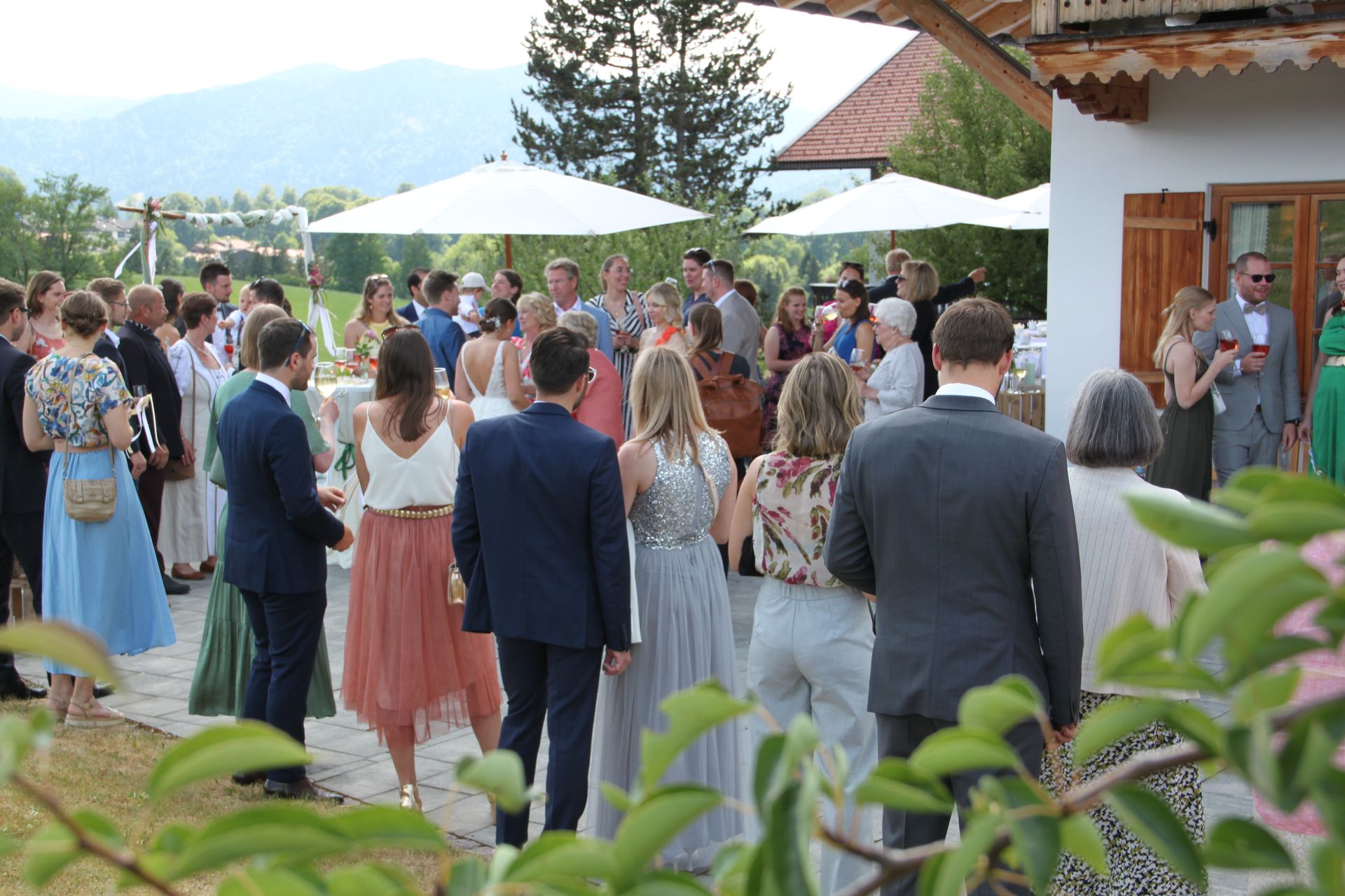 Genießen Sie von unserer großen Terrasse aus den herrlichen Ausblick auf die prächtige Alpenkulisse. Ein atemberaubendes Panorama für Ihre Hochzeitsfotos und ein unvergessliches Erlebnis für Sie und Ihre Gäste.